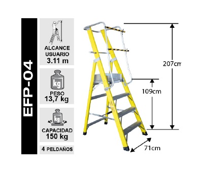 ESCALERA FIBRA DE VIDRIO TIJERA PLATAFORMA SERIE EFP-04 Altura Plataforma 1.09 m ,